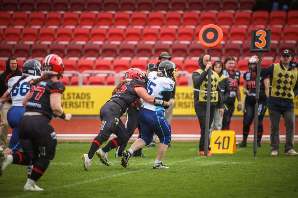 – Jag drömmer om en tydlig väg för tjejer i amerikansk fotboll – från ungdomslag till landslag på olika nivåer – där det finns bra träningsmiljöer och resurser. Att faktiskt få möjligheterna att spela på alla nivåer utan att behöva ha motgångar konstant bara för att du är av ett annat kön. Samtidigt vill jag att det ska vara möjligt att ta steget vidare till high school eller college i USA. Det börjar hända saker där, men det är fortfarande väldigt begränsat.